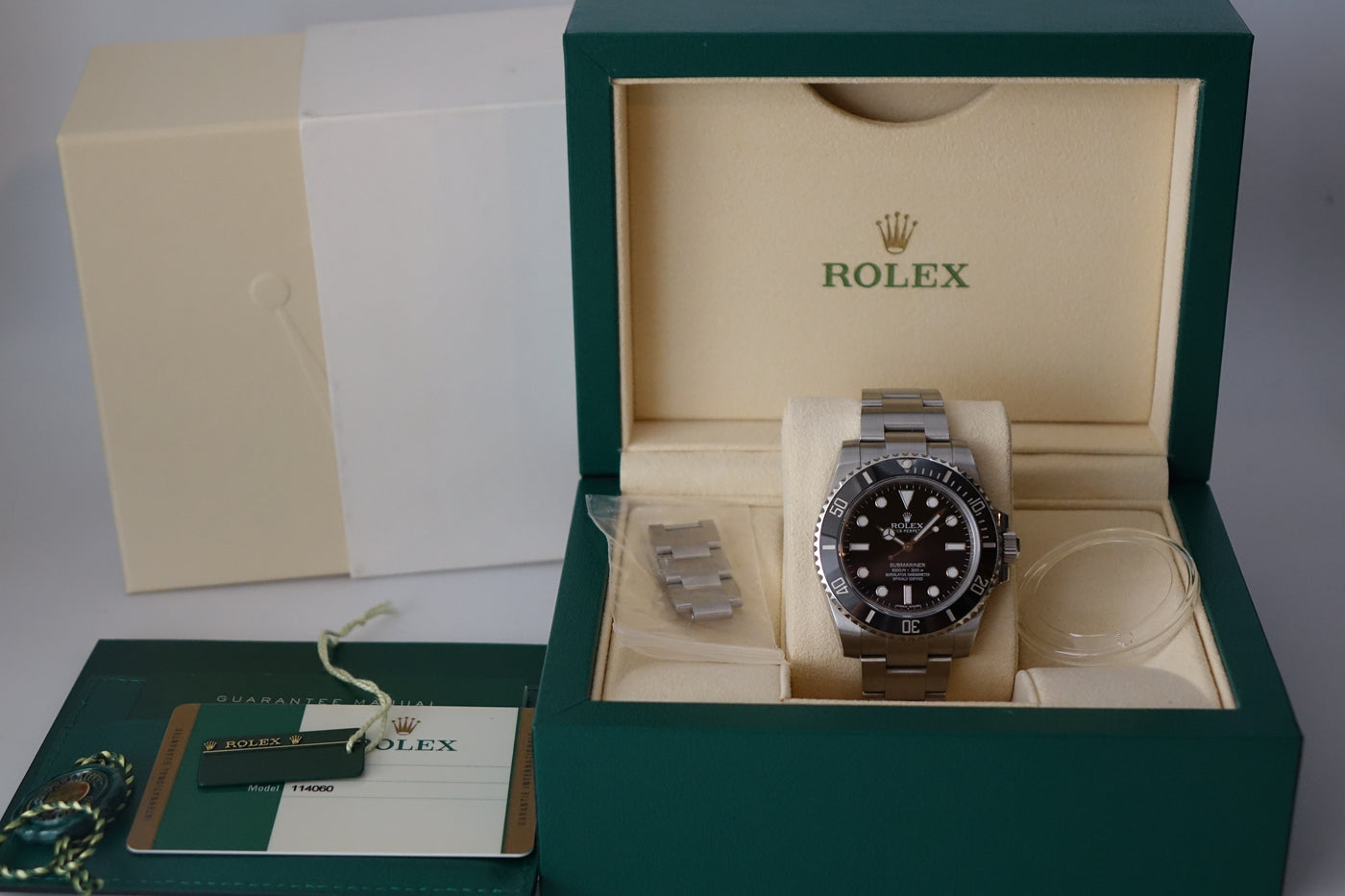 Comes with: Box, Papers, Card holder, Booklets, Matching serial tags & Bezel Cover