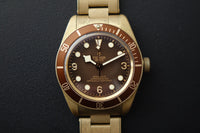 Retails at around SGD$7,140. Offered here is a satin-brushed bronze case that develops a unique patina over time, a matching bronze unidirectional bezel, domed sapphire crystal. Inspired by Tudor’s 1958 Big Crown divers, this model blends vintage-tool aesthetic with modern movement performance.