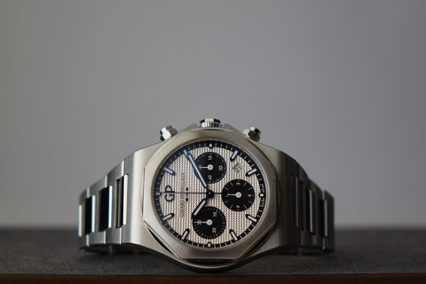 Retailing at SGD 28.7k, this unpolished Girard-Perregaux Laureato Panda offers one of the strongest value propositions in the luxury sports watch category—pairing its sleek integrated-bracelet design with GP’s refined case finishing and in-house automatic movement. The crisp white Clous de Paris dial gives it a clean, modern presence that transitions effortlessly from casual to formal. With genuine 1970s heritage and rising collector appreciation, the Laureato stands as a compelling alternative to the Royal Oak and Nautilus, delivering exceptional build quality, comfort, and timeless appeal. Missing 2 links