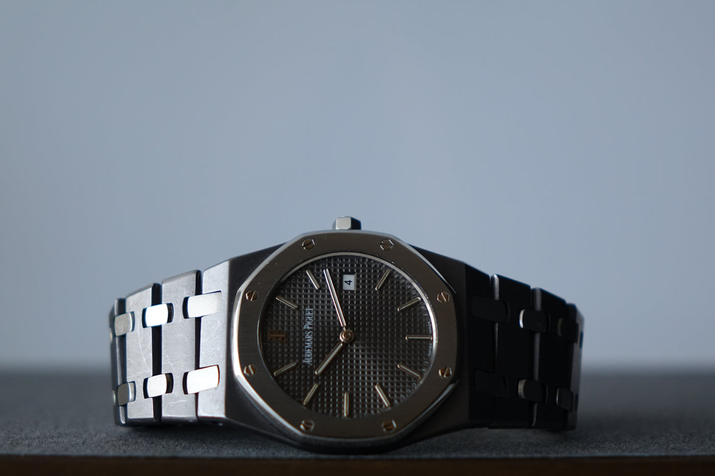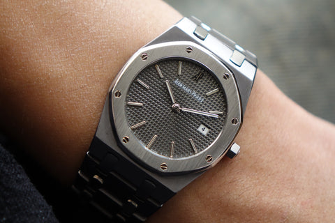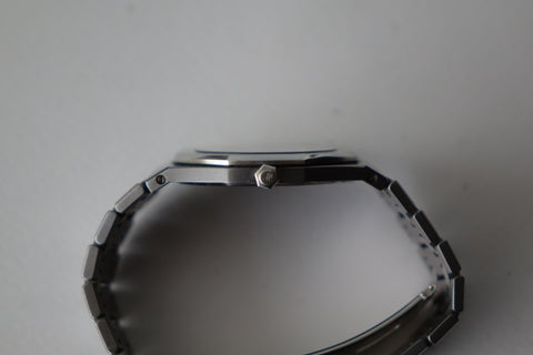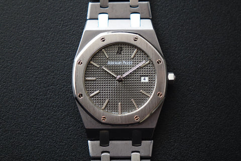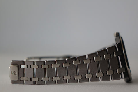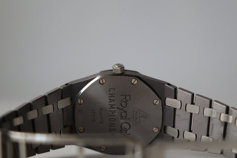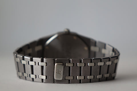 Offered today is a highly coveted limited edition Royal Oak, produced in a limited run of 2,000 pieces to commemorate Nick Faldo and his remarkable victories at both the Masters and the British Open in 1990. This reference is also known as one of the thinnest Royal Oaks ever produced and marked the inaugural use of tantalum within the Royal Oak lineup. Crafted in a distinctive combination of tantalum and stainless steel — with the darker tantalum bezel contrasting against the steel case and bracelet — the watch carries a unique bluish-grey tone and substantial feel on the wrist. With its unusual materials, ultra-slim Royal Oak profile and limited production, the Nick Faldo Royal Oak stands out as a fascinating and increasingly collectible piece within the Royal Oak family.