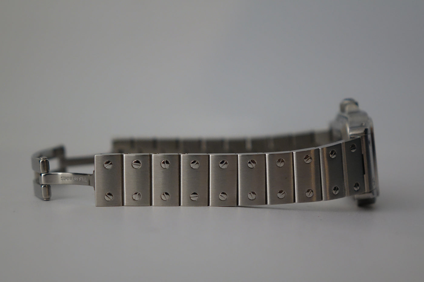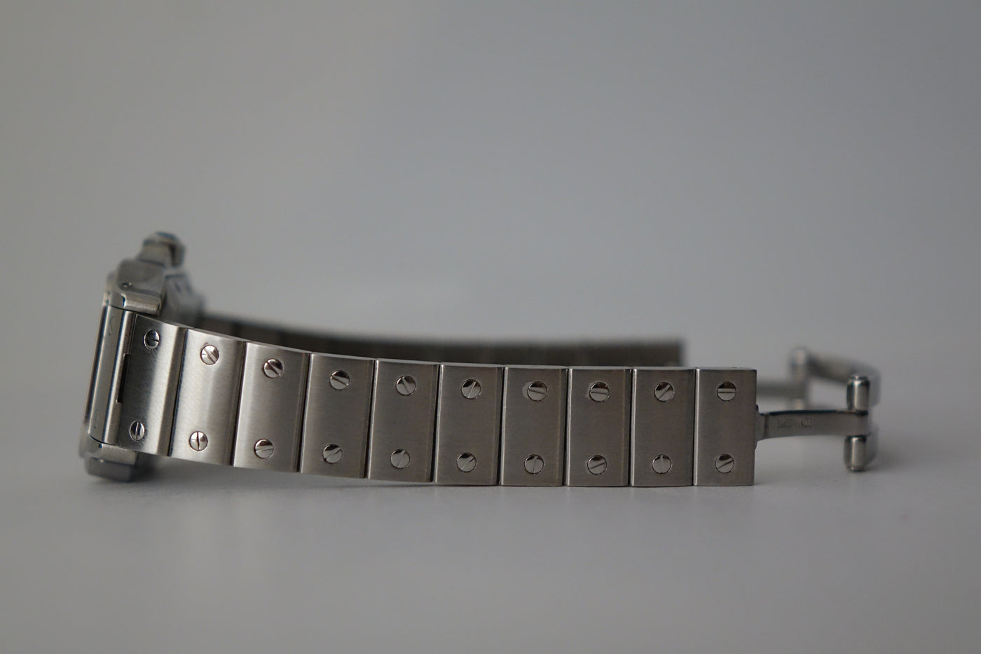 Serviced by Cartier in May 2022. The Cartier Santos Galbee 2423 is an iconic and timeless piece, offering the elegance of the Santos collection in a more compact design. With its vintage appeal, it’s perfect for collectors who find the current Cartier lineup too bulky. This watch wears with refined sophistication, making it ideal for both daily wear and special occasions. A great opportunity to own a classic with understated luxury and perfect proportions.