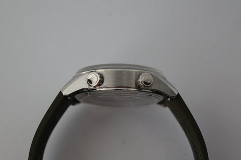 Retails for SGD$16.5k. Offered here is a stunning modern interpretation of a classic diver’s icon. Housed in a stainless steel case with satin-polished finishing, this model features a captivating green gradient lacquered dial meticulously crafted with over 35 layers of lacquer to create remarkable depth and shifting tones under different light. Inspired by the legendary 1968 Memovox Polaris, this model continues Jaeger-LeCoultre’s tradition of blending precision engineering with timeless sport-luxury aesthetics.