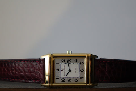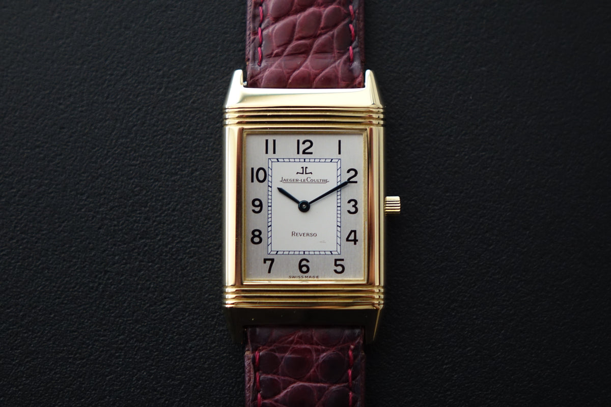 A timeless icon of elegance and ingenuity. Crafted in 18k yellow gold, its sleek rectangular case and reversible design honor the Reverso’s original purpose: protecting the dial during polo matches while offering refined sophistication for any occasion. With its clean, understated dial and flawless proportions, this piece is a masterclass in versatility and style — a watch that wears beautifully and tells a story of decades of JLC craftsmanship.