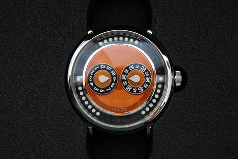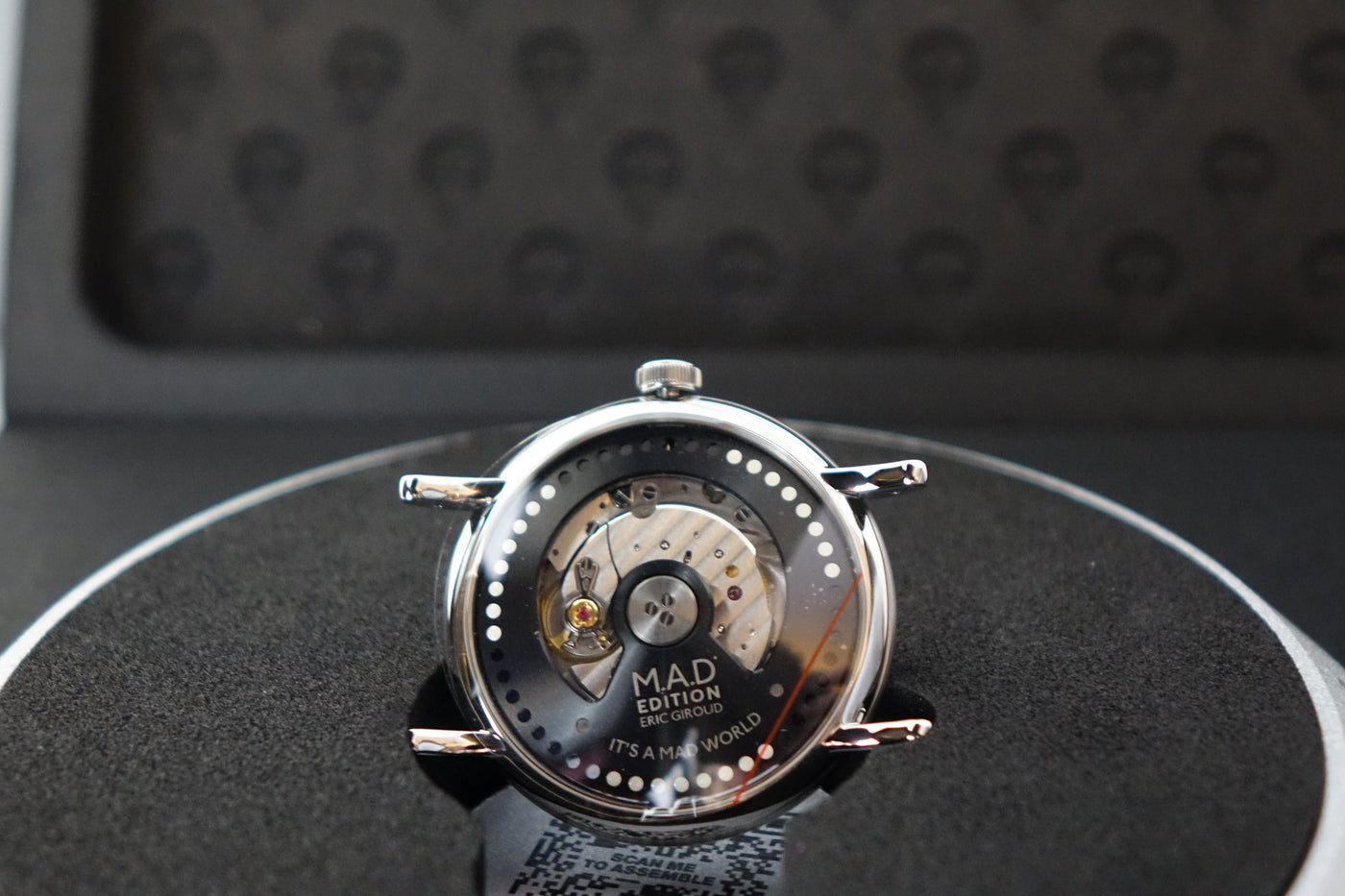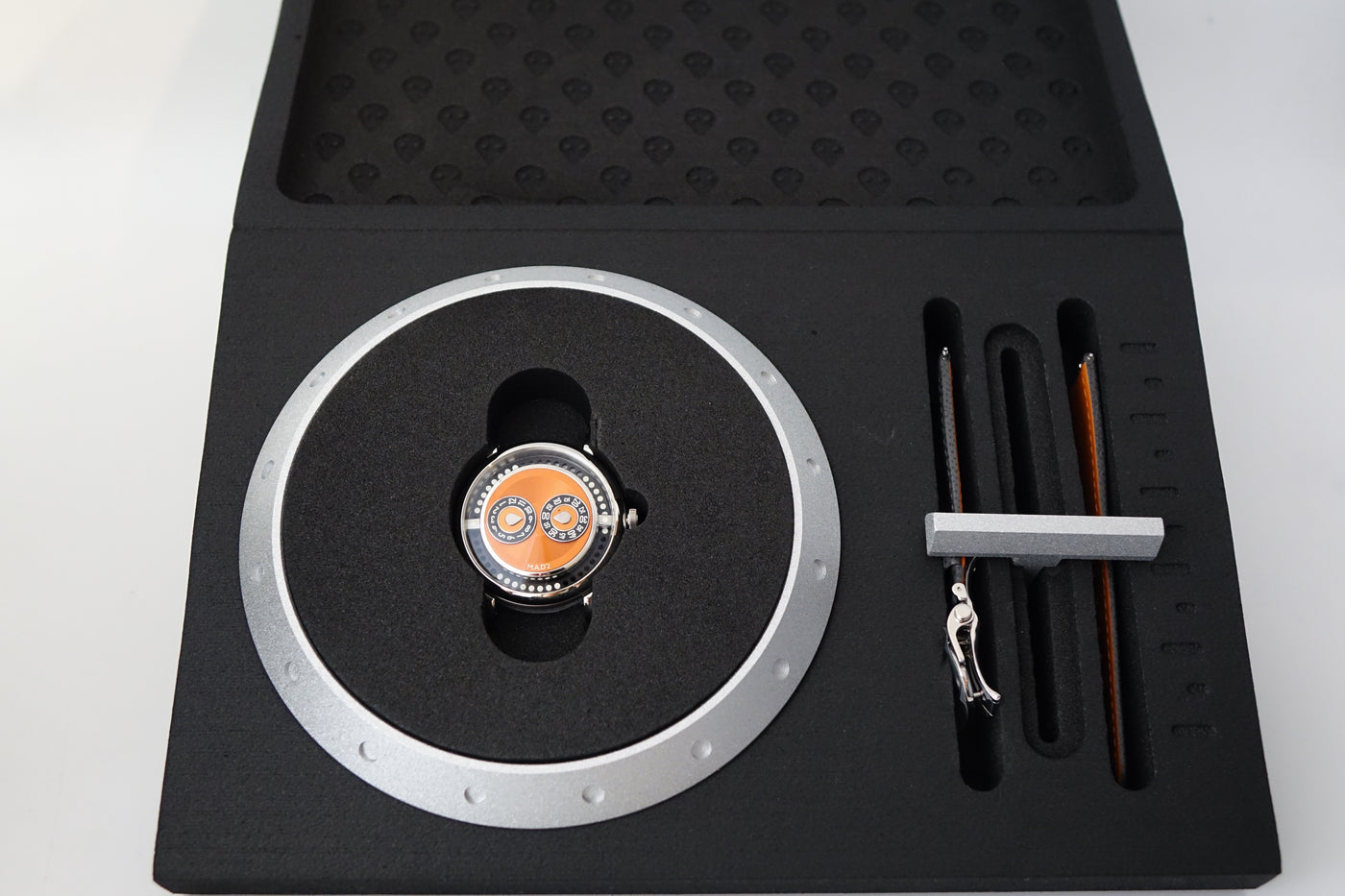 Tribe and Friends Exclusive. Offered here is a bold, art-meets-music statement in a pebble-like stainless steel case. Inspired by the pulsating energy of 1990s club culture, think vinyl grooves, turntables, and underground dance floors, its dial mimics a DJ platter, while the platter itself doubles as the automatic winding rotor. This piece also commemorates Giroud’s 20-year design partnership with Max Büsser, bringing a deeply personal and celebratory touch to the collection.
