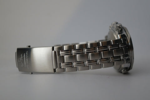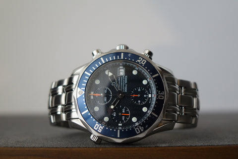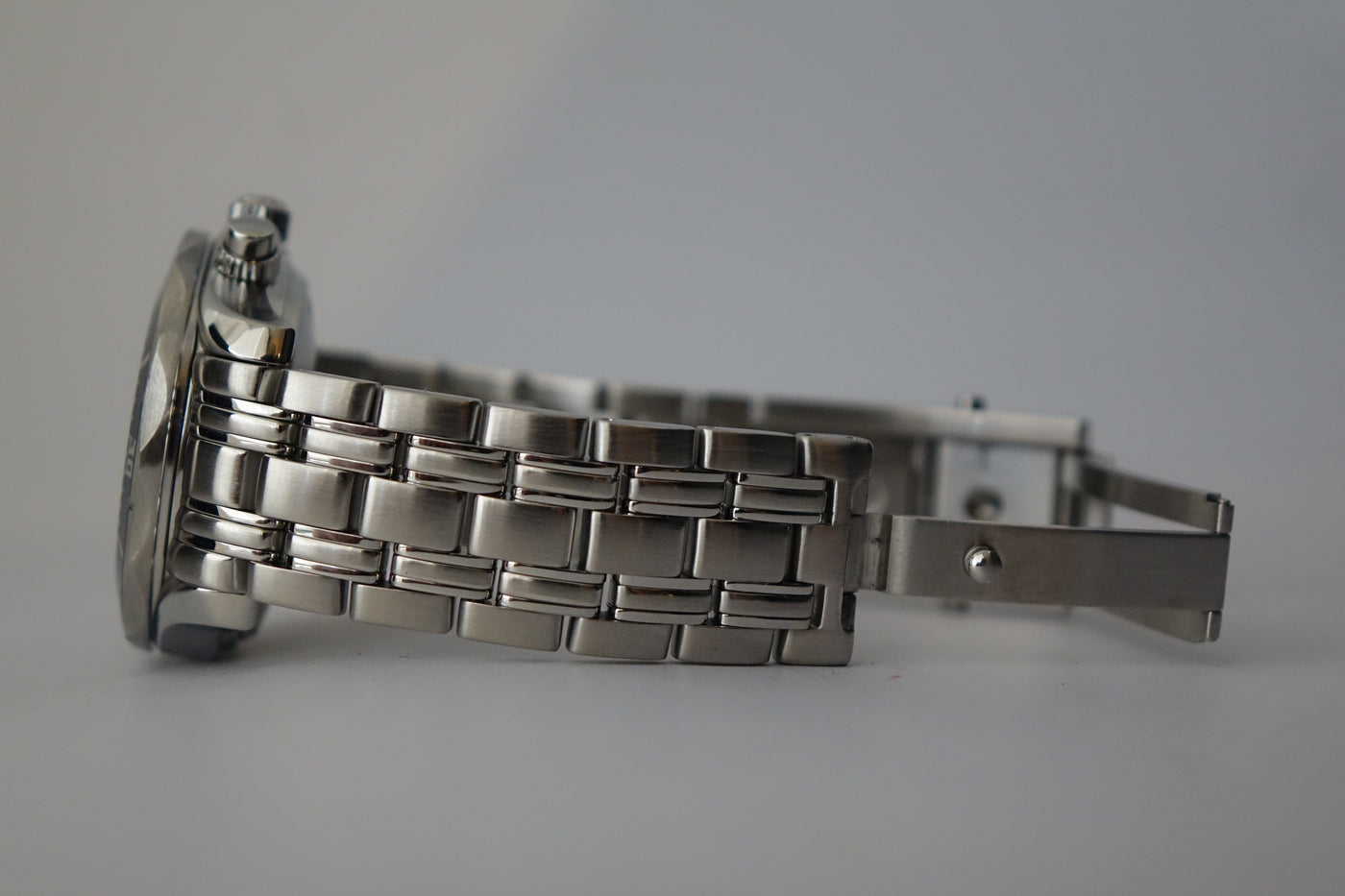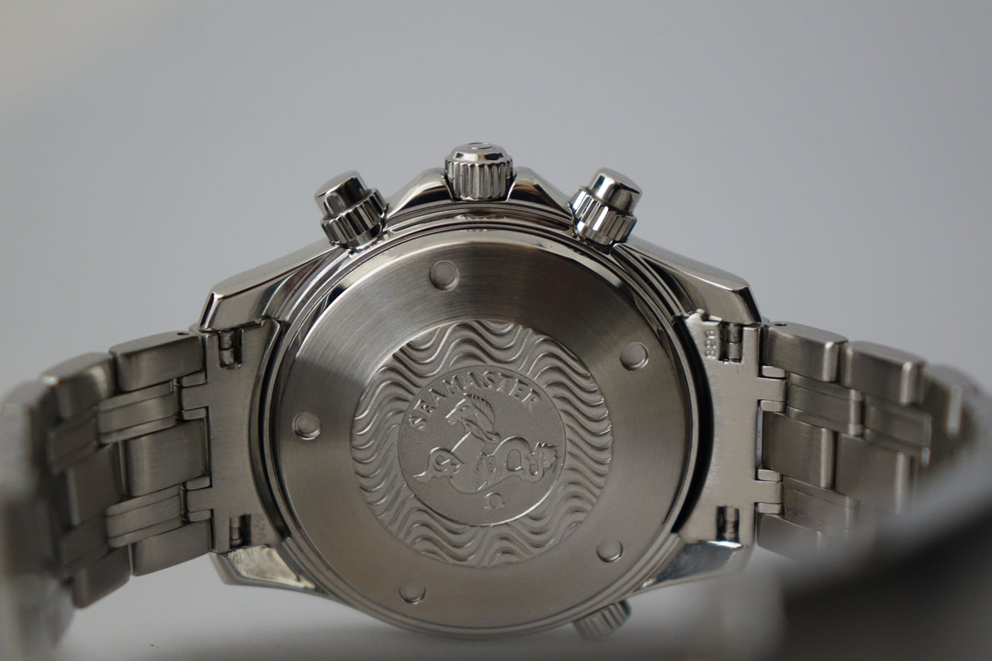 Offered here is a robust steel automatic chronograph built for serious depths—rated to 300 m—with sapphire crystal, screw-down pushers and crown. First launched in the late 1990s as part of the iconic Seamaster Diver 300M line and continuing Omega’s dive-watch legacy.