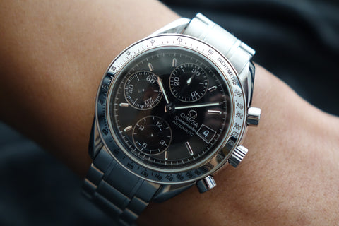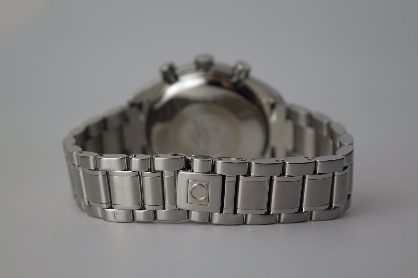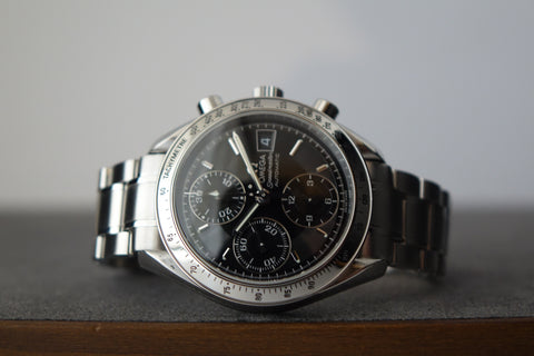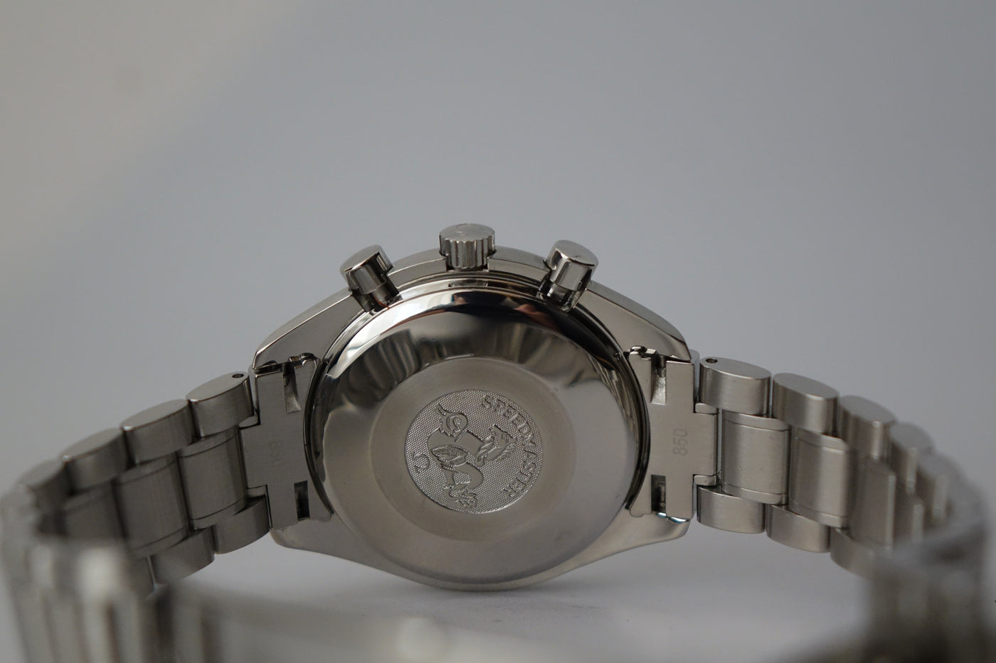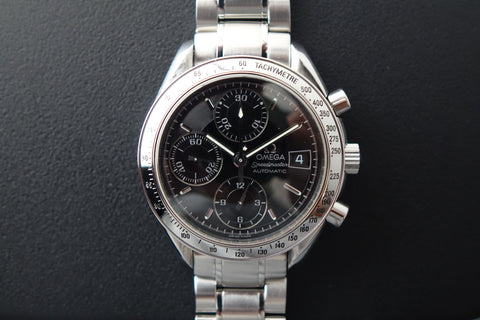 Offered here is a stainless steel automatic chronograph. With sapphire crystal, date function, and a tachymeter bezel, this model brings the legendary Speedmaster styling into a more compact and everyday-friendly format. Introduced in 1998, it is part of Omega’s pivot toward automatic movements within the Speedmaster line.