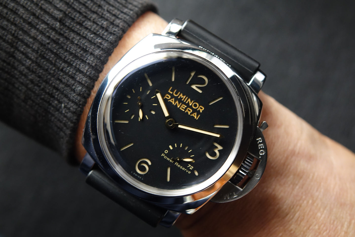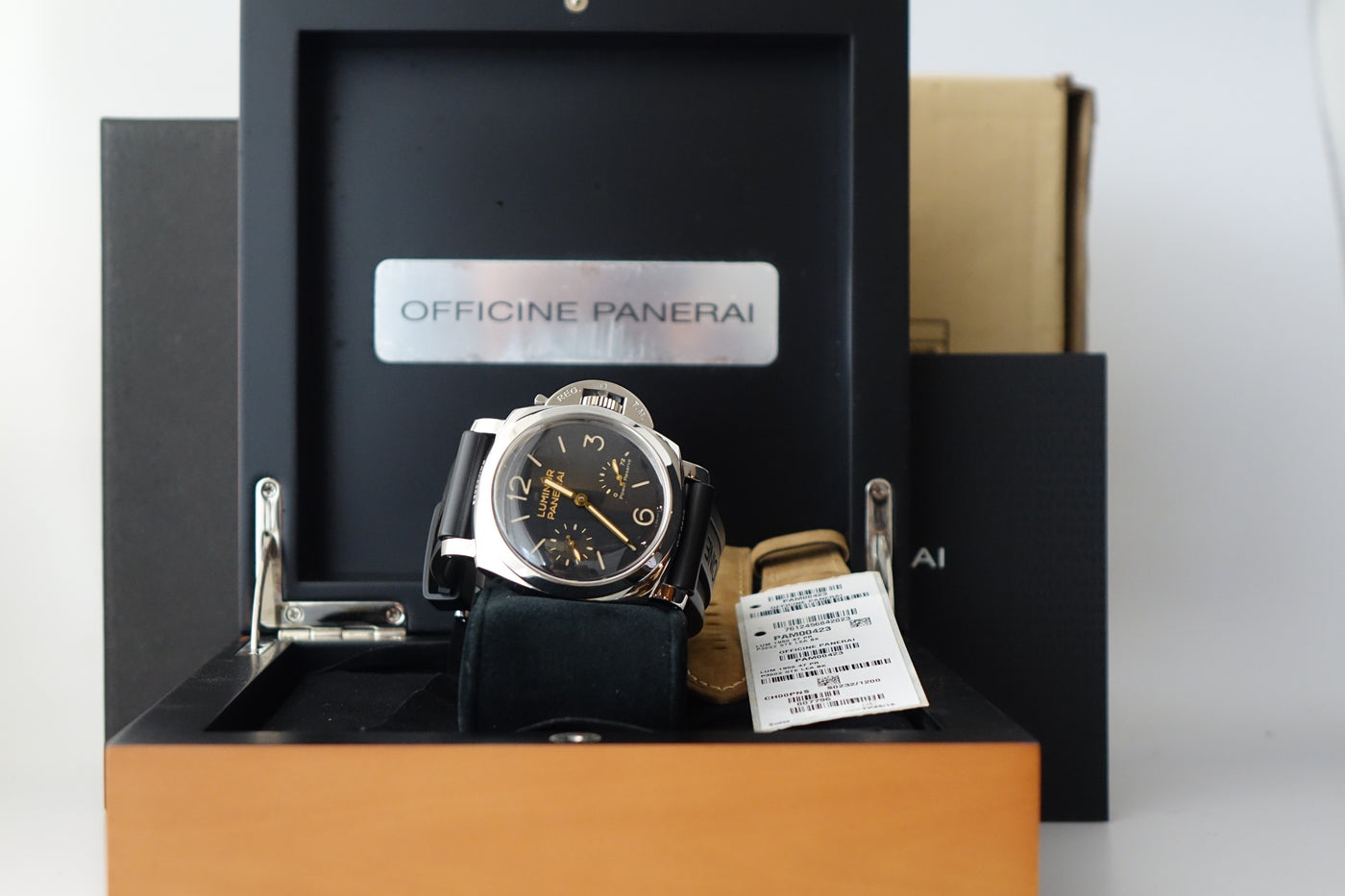 Comes with: Box, Papers, Booklets, Panerai Leather strap & Serial Tag