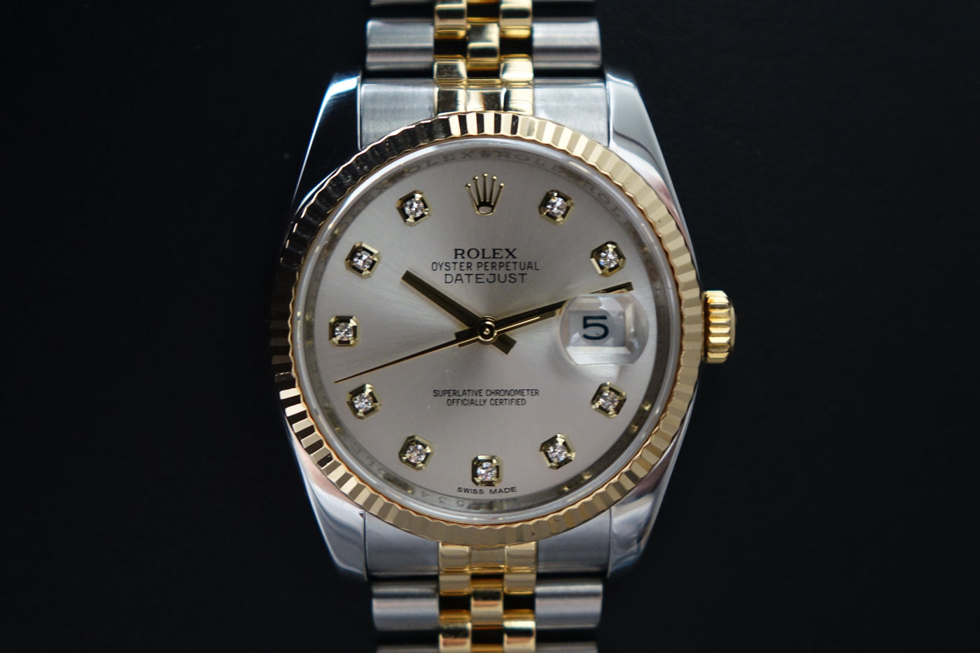 Rolex Datejust 36 116233 silver 10 pt diamonds full set – Wristime