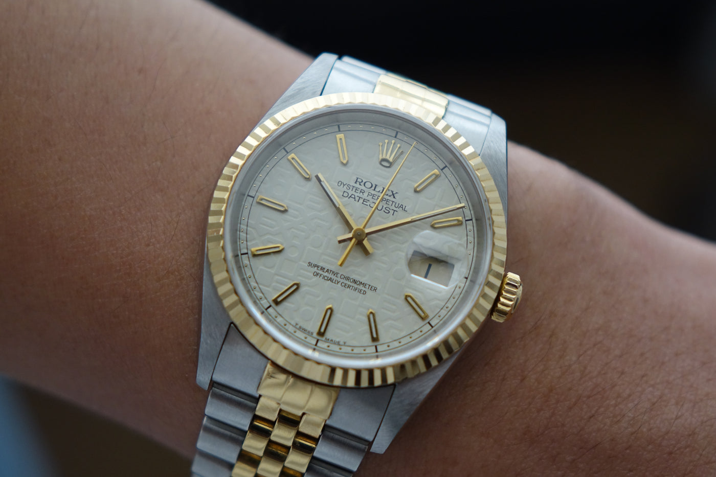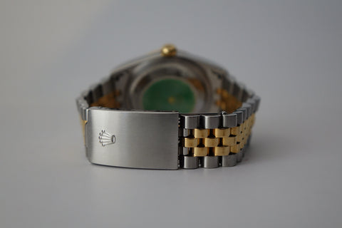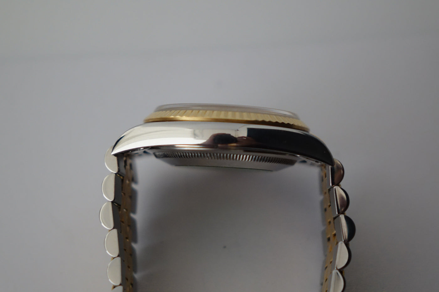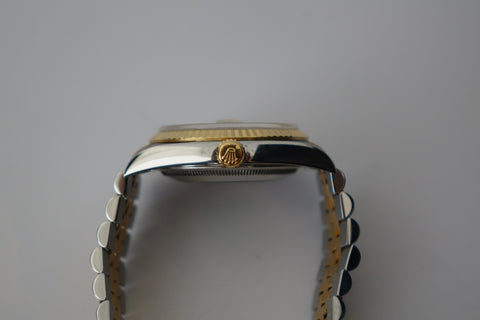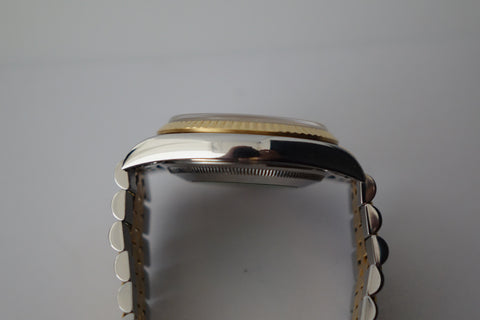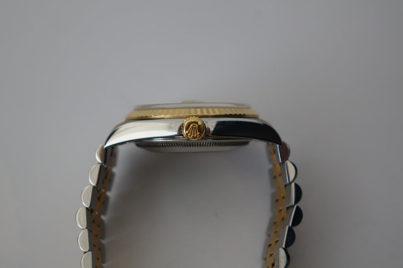 Offered here is a rare white computer dial a distinctive factory variation. This classic steel and 18k yellow gold Rolesor model blends the enduring elegance of the Datejust line. Introduce in 1945 with modern refinements such as the quick-set date and sapphire crystal. Caseback Factory sticker still intact.