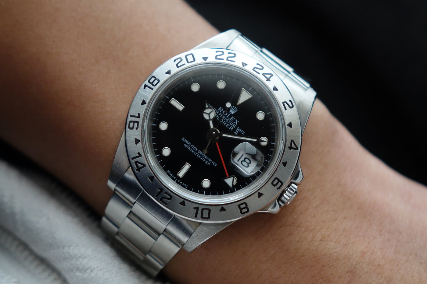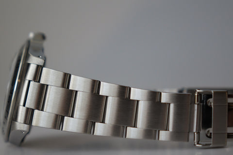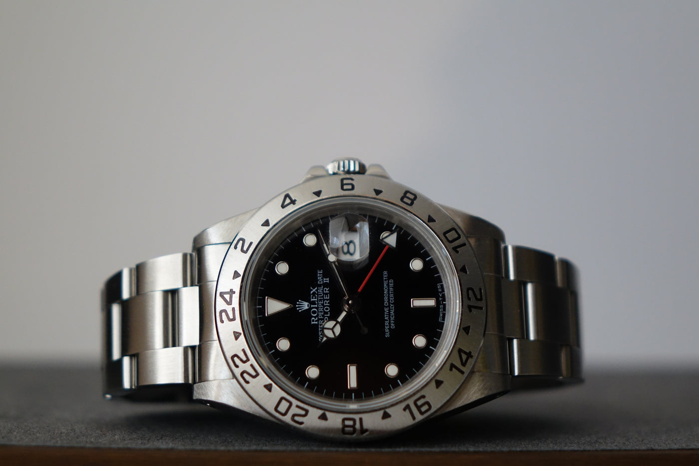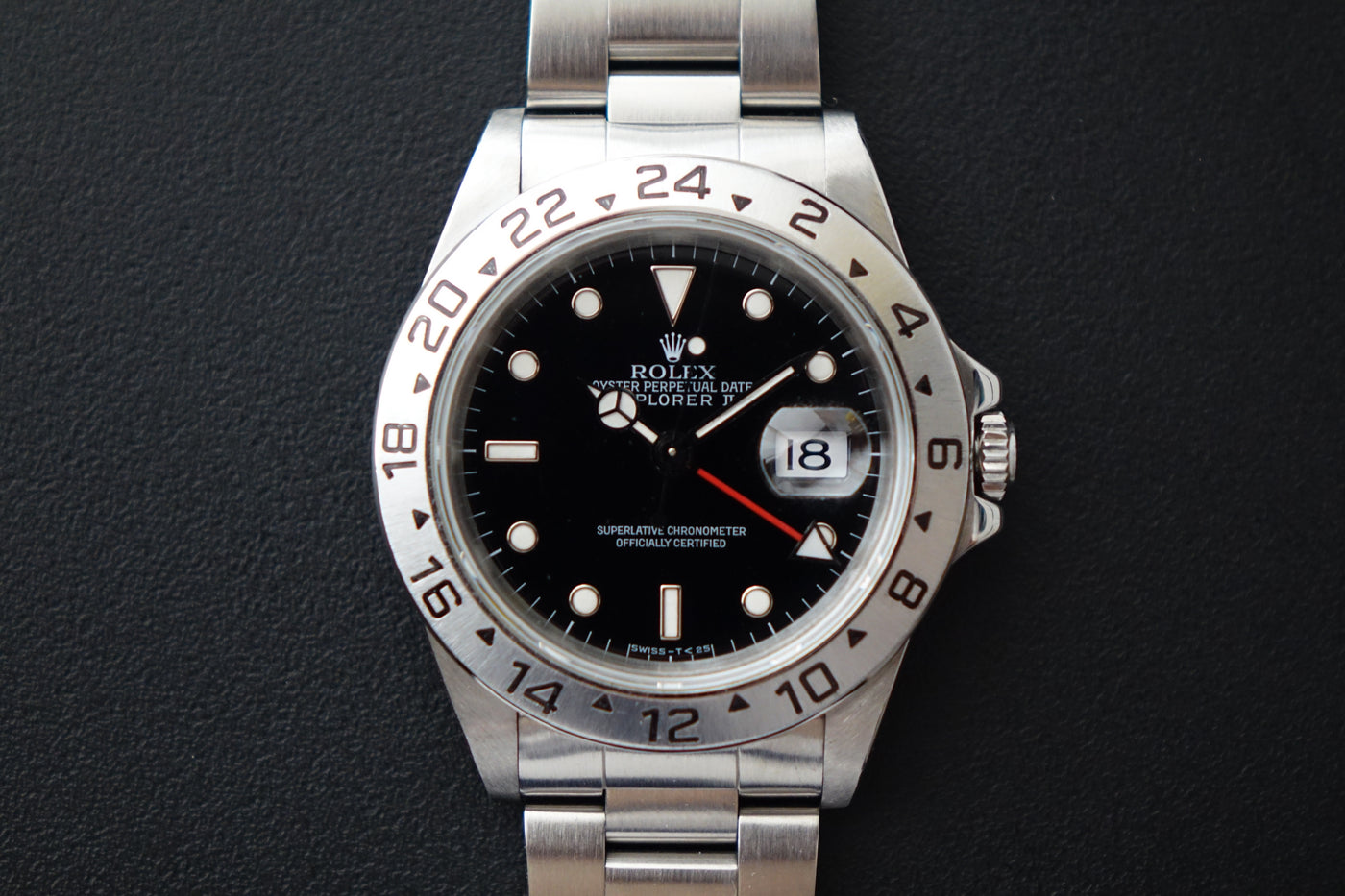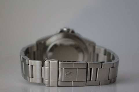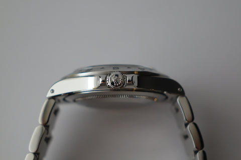 A highly collectible example from the 1998 U-serial Tritinova transition, this rare transitional Explorer II captures the brief and well-defined moment when Rolex introduced Super-Luminova lume while still printing the classic “T<25” text on the dial — a unique pairing of bright SL hands and indices with tritium-era markings found almost exclusively within the 1998 U-serial run. Housed in the iconic 40 mm case and powered by the dependable Calibre 3185, it represents a fascinating point in Rolex history where technology evolved faster than dial printing conventions. Offered here as a complete full set, an increasingly scarce package that enhances its appeal among serious collectors. Missing 2 links