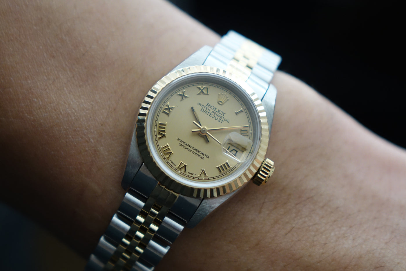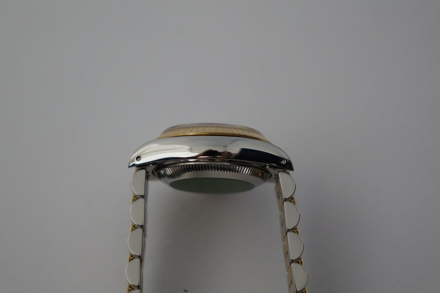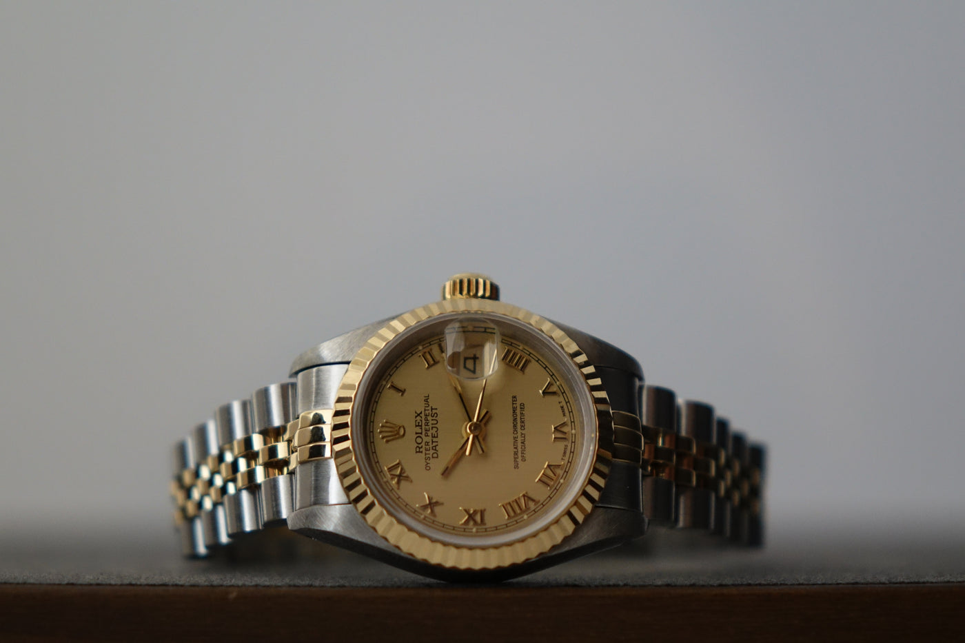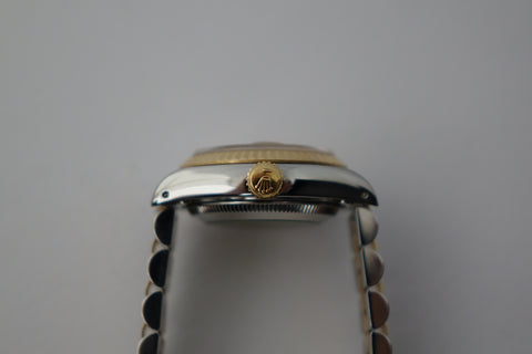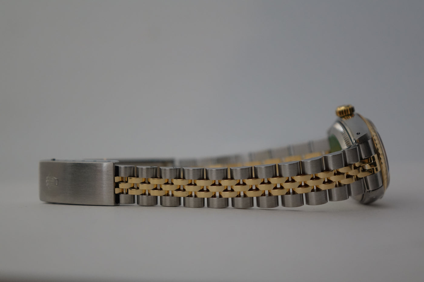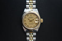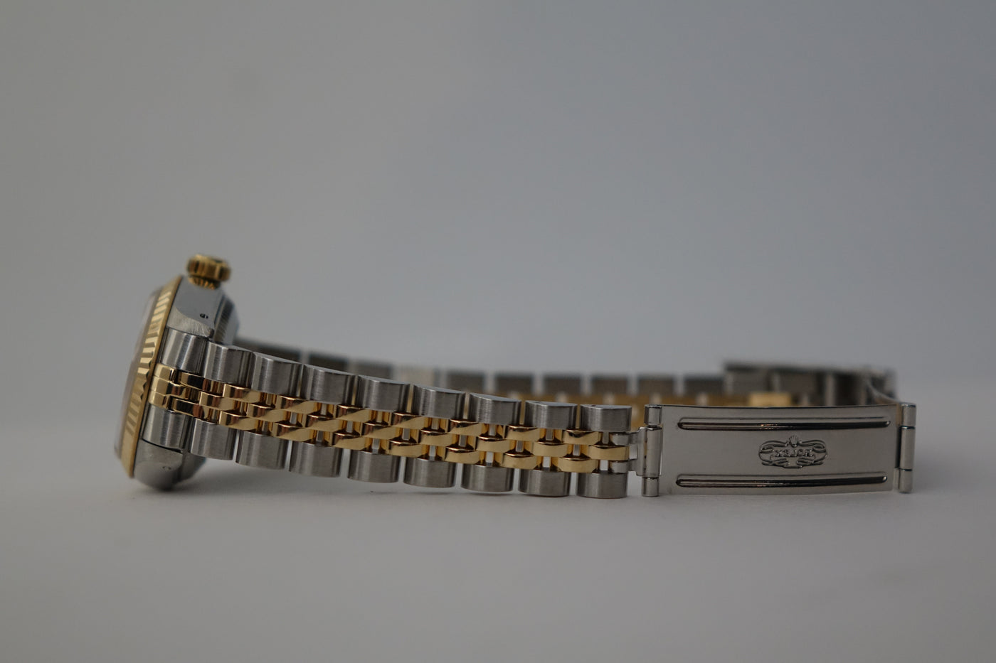 Offered here is an iconic stainless-steel watch with 18 k yellow gold fluted bezel, paired with the two-tone Jubilee bracelet and a timeless champagne dial that radiates elegance. Since its debut in the 1980s as part of the long-running Rolex Lady-Datejust line, this reference has remained a beloved entry-point into Rolex ownership combining refinement, practicality, and classic design all in one.