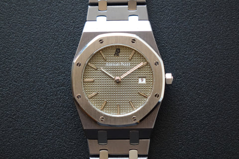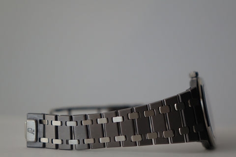 A Royal Oak for those who know. Limited to just 2,000 pieces, this rare edition pays tribute to Nick Faldo and stands out as the first Royal Oak crafted in a unique mix of tantalum and steel giving it that distinctive weight and subtle blue-grey tone collectors appreciate. Finished with a tropical dial that has aged beautifully over time, each piece carries its own unique character and warmth. Ultra-thin, neo-vintage, and quietly exclusive, it sits right in the sweet spot between heritage and everyday wearability.