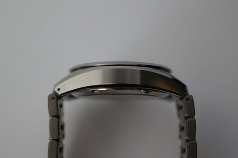 Retails for SGD$14,000. Offered here is a stunning example of modern Japanese craftsmanship and technical mastery. Housed in a high-intensity titanium case, it’s both lightweight and durable, offering exceptional comfort on the wrist. The beautifully textured Lake Suwa dial captures the serene ripples of water under light, a hallmark of Grand Seiko’s nature-inspired design philosophy.