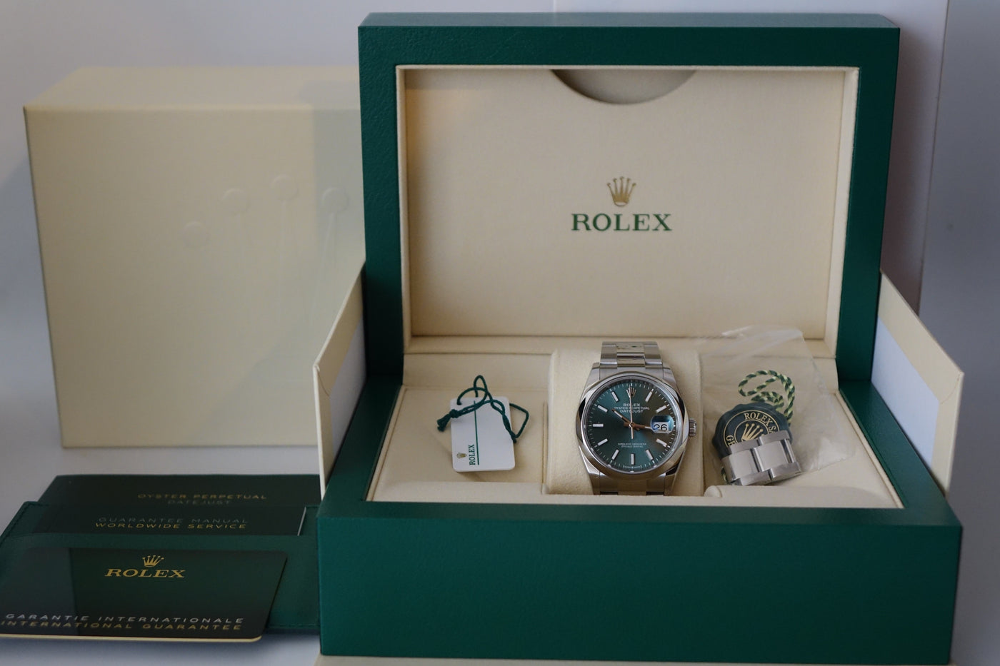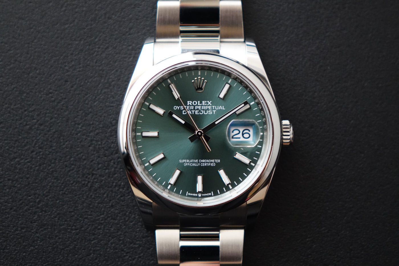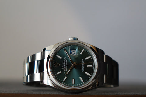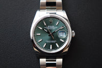 Unpolished one owner set, only worn a couple times. A refreshing take on a timeless icon — the Rolex Datejust 36 with its striking mint green dial brings a modern pop of color to a classic silhouette. Paired with the smooth bezel and Oyster bracelet, this piece balances everyday versatility with standout charm. A contemporary Rolex staple that’s impossible to ignore.