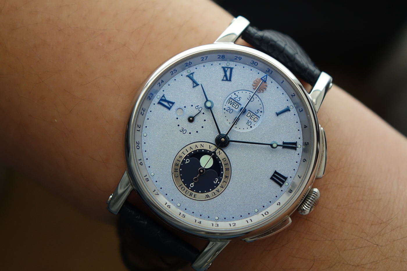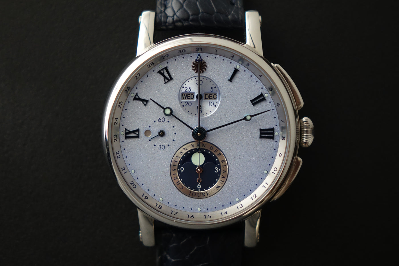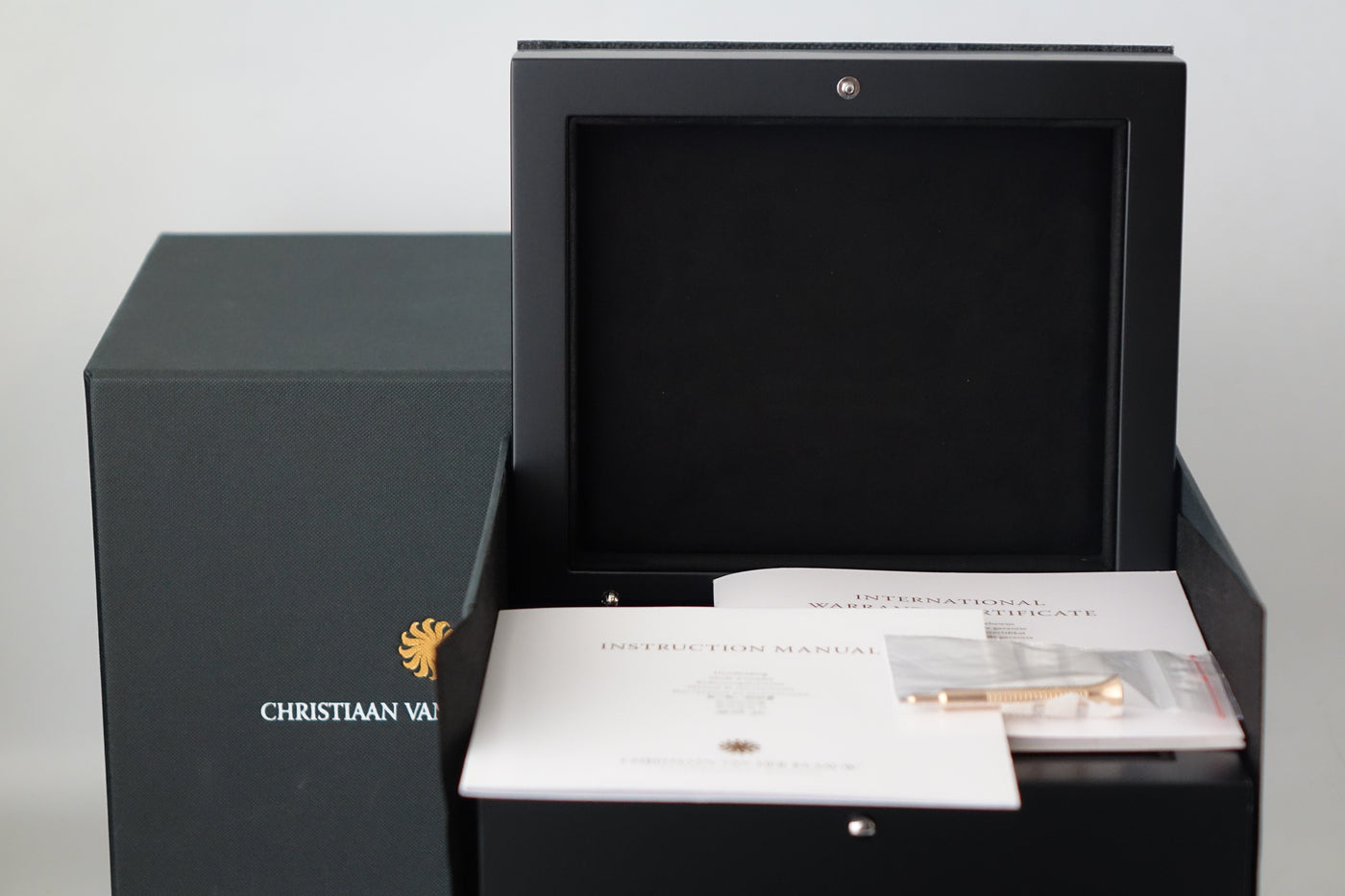 One owner unpolished set. The CVDK CKHN3356 is a striking expression of modern astronomical watchmaking, defined by its bold presence and artistic dial. Housed in a 44 mm stainless steel case, it features CVDK’s signature aventurine star-sky dial, creating remarkable depth and visual impact on the wrist. Produced in very limited numbers each year, every Hypernova is hand-finished and individually tested, reflecting the atelier’s dedication to craftsmanship and quality, and is backed by a three-year manufacturer warranty on the movement and case. A distinctive and contemporary piece from an independent maison, this example represents an excellent opportunity for collectors seeking something truly out of the ordinary.