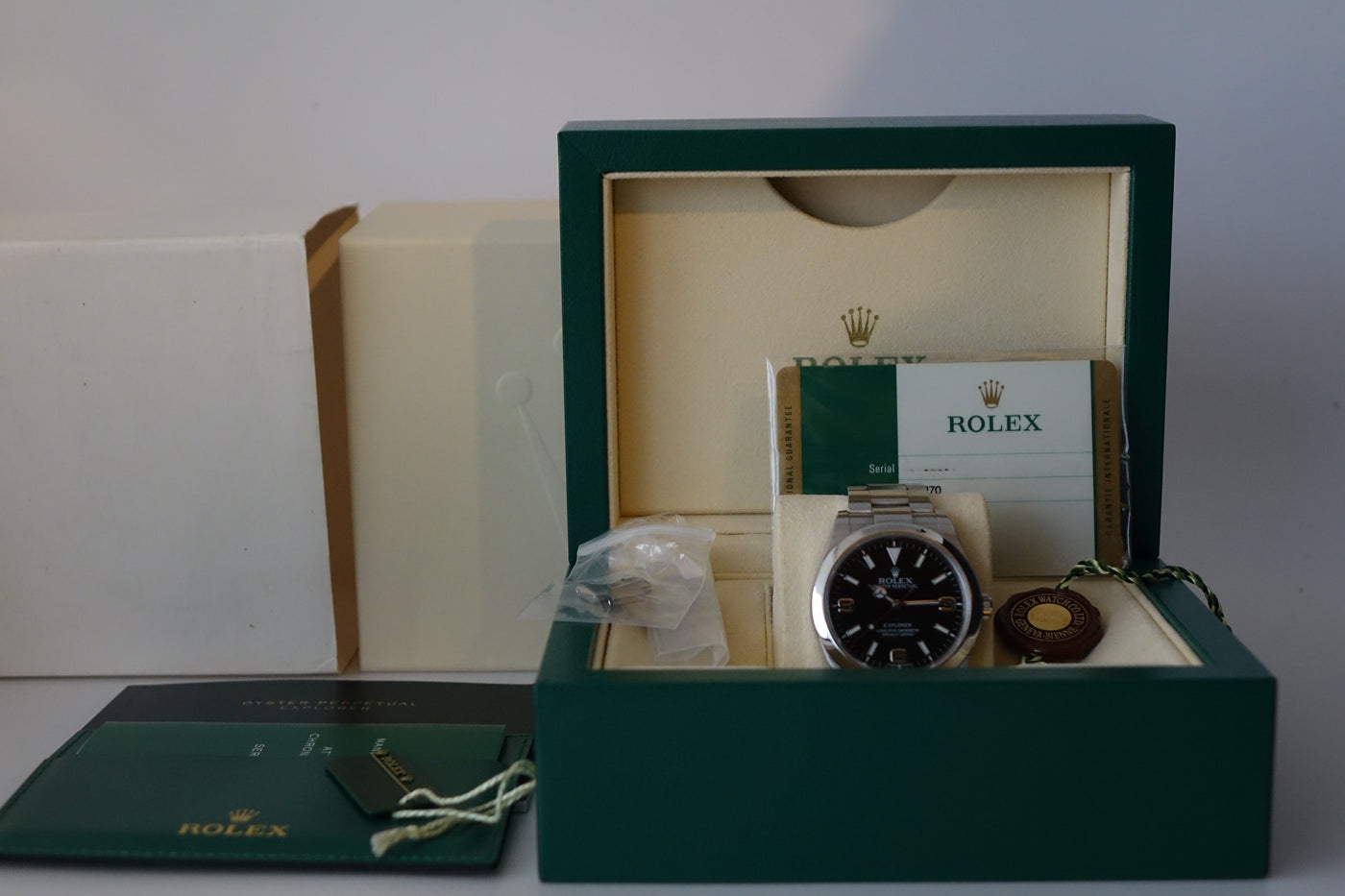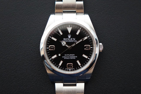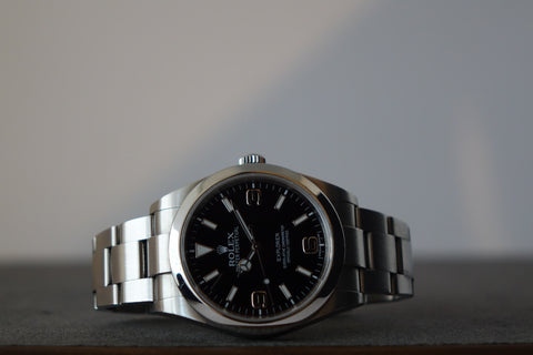 Current model retails for SGD 11.8K — offered here is the Rolex Explorer 214170 Mark 1, featuring the original MK1 dial with its signature white gold 3-6-9 numerals and handset — a detail that sets it apart from later MK2 executions. As the first iteration of the 39 mm Explorer, the MK1 remains a favourite among collectors who appreciate the earlier dial configuration. A modern classic that blends vintage Explorer DNA with contemporary wrist presence, and one that purists will always appreciate in its original form.