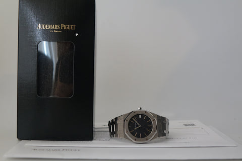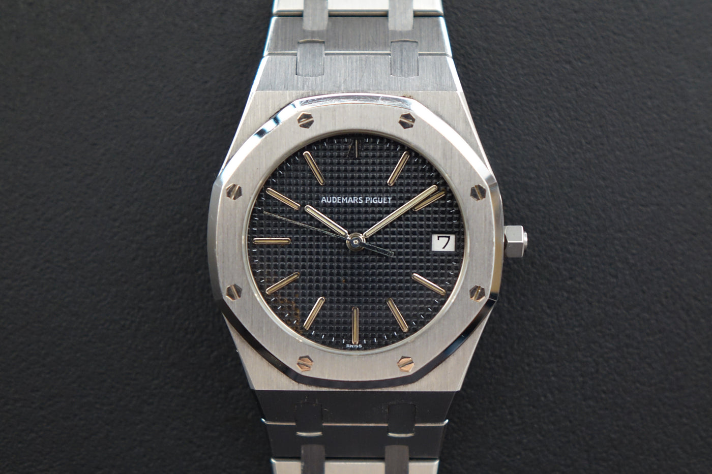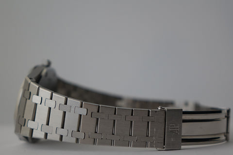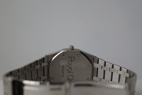 The 56023ST holds a special place in Royal Oak history as the first quartz Royal Oak model, introduced during the early 1980s when the brand was exploring new directions while preserving Gérald Genta’s iconic design language. Measuring 35mm, it offers a refined, versatile take on the classic Royal Oak proportions—retaining all the signature elements from the octagonal bezel with exposed screws to the integrated bracelet and petite tapisserie dial. This particular piece presents nicely with strong overall condition, making it a great entry into vintage Royal Oak collecting.