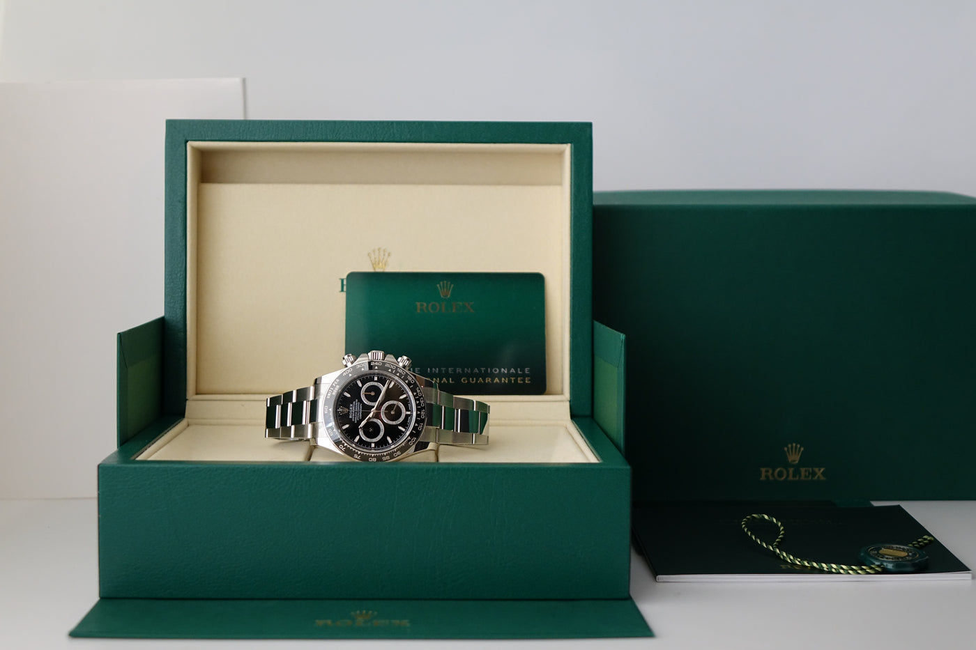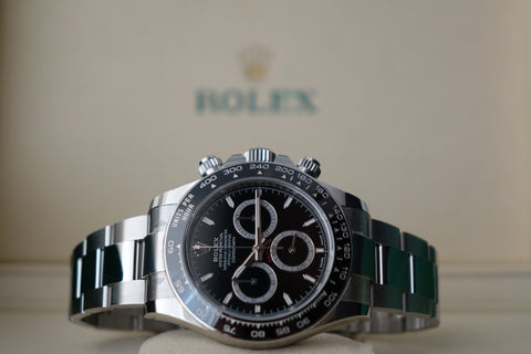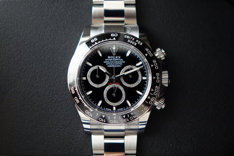 The Rolex Cosmograph Daytona 126500LN “Godzilla” represents the new era of modern Daytona, succeeding the highly coveted 116500 while refining the formula in all the right ways. It features an updated dial layout with slimmer sub-dial rings and more balanced proportions, paired with the signature black Cerachrom bezel that gives it a sharper, sportier wrist presence. Powered by the new Calibre 4131 movement with upgraded finishing and performance, this current-production model remains one of the most sought-after Rolex sports watches today, backed by long waitlists worldwide and undeniable collector demand — a true staple piece in any serious collection.