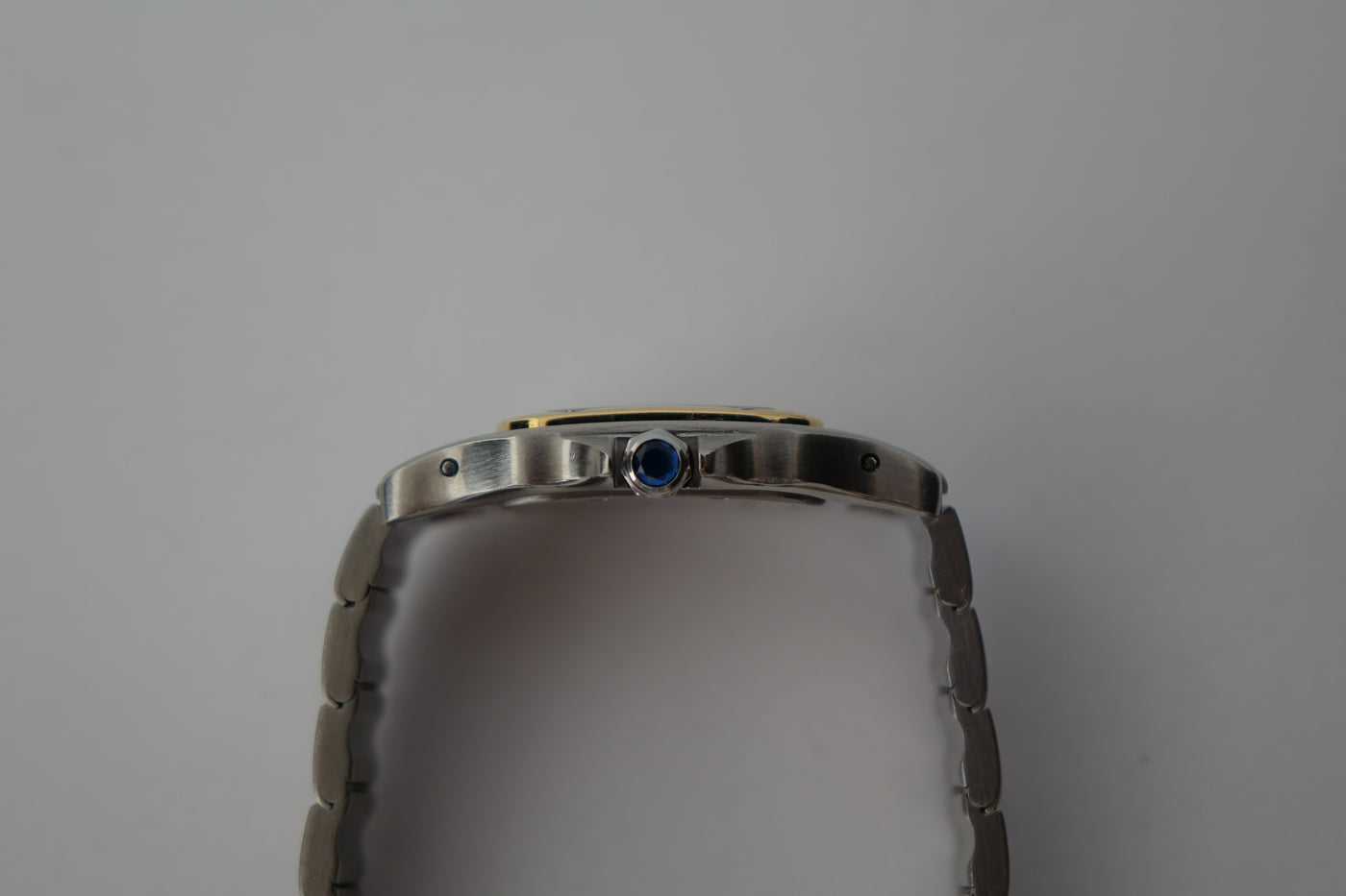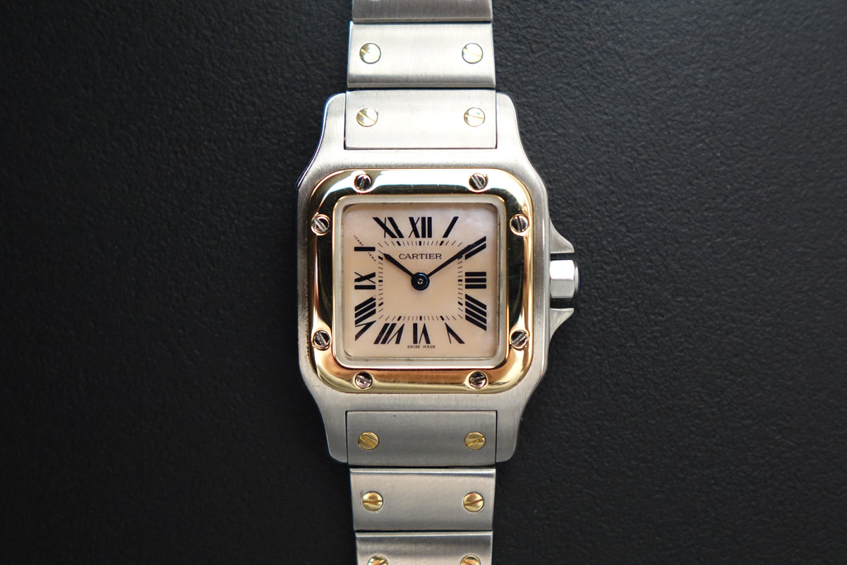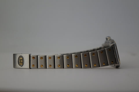 Offered here is a ladies’ two-tone stainless steel and 18k yellow gold model that blends timeless elegance with everyday wearability. This example features a stunning upgraded mother-of-pearl dial for added sophistication, the original factory dial will also be provided. Originally introduced in the late 1980s–1990s as a modern evolution of Cartier’s first aviator’s wristwatch created for Alberto Santos-Dumont in 1904, the Galbée represents heritage with a refined twist. Small crack on the dial only visible at certain angle