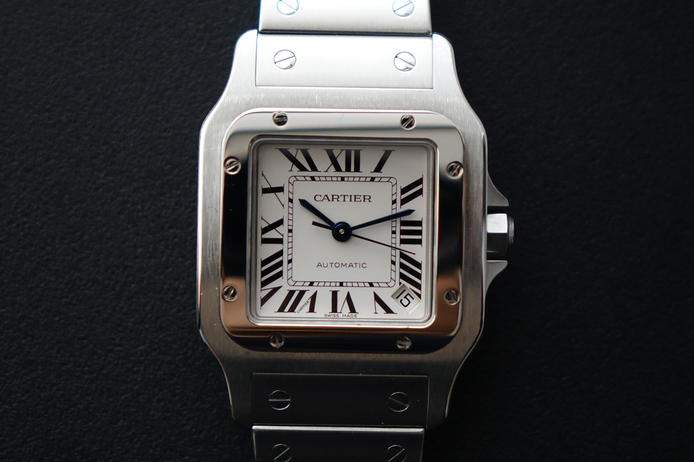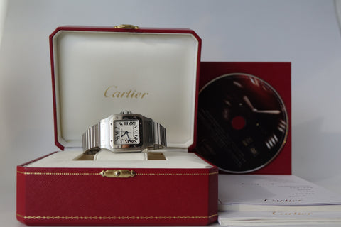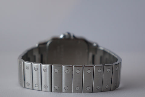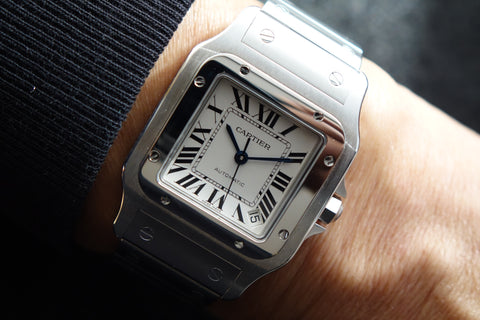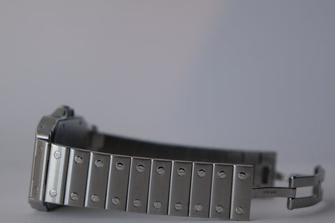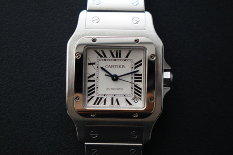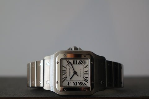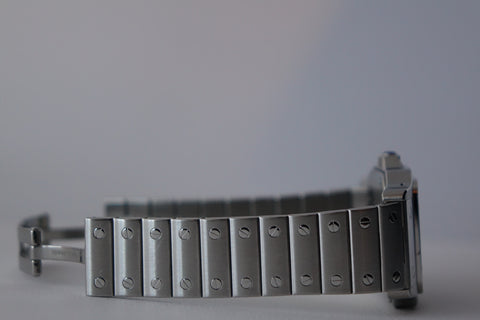 A true classic, this Cartier Santos Galbée ref. 2823 is one of those pieces that never goes out of style. With its signature square case, exposed screws and clean Roman numeral dial, it carries the same design language that dates all the way back to one of the first wristwatches ever made. This set comes complete with box and papers, which is getting harder to find today and adds to its overall appeal. Sized at around 32mm but wears larger thanks to the case shape, it sits comfortably on the wrist and works effortlessly as a daily piece. Simple, timeless, and instantly recognisable—everything you want in a proper Cartier.