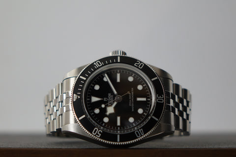 Retails for SGD 7K, the Black Bay Monochrome M7941A1A0NU-0003 is a clean, modern evolution of Tudor’s dive watch lineage — bringing a sharper, more contemporary edge while staying true to the brand’s tool-watch roots. The black bezel paired with the clean monochrome dial layout gives it a sleek, versatile look without going full stealth. Refined case proportions and the updated jubilee bracelet add everyday comfort dressier on wrist compared to the traditional oyster bracelet. This example also comes with partial factory stickers.