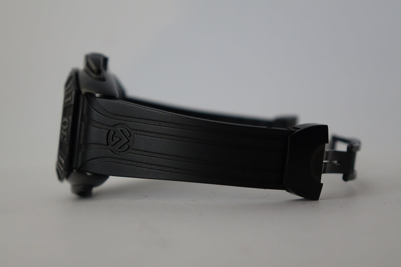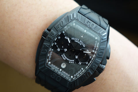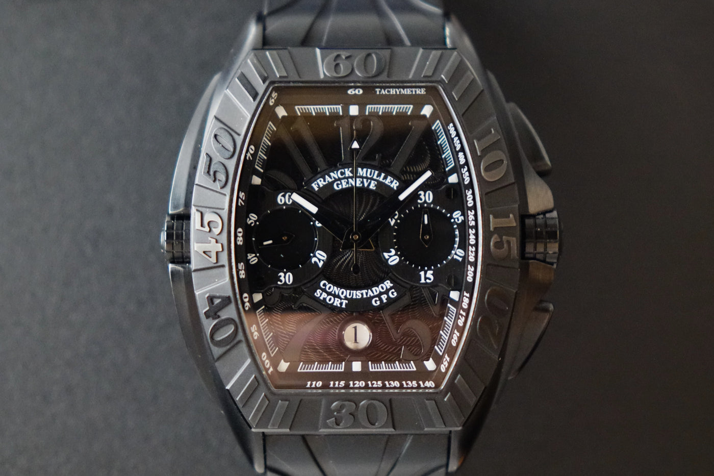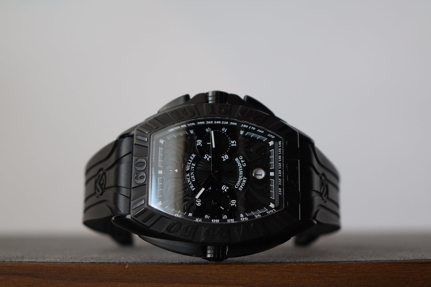 Limited edition of 100 pieces. Offered here is a bold and distinctive timepiece that perfectly embodies the brand’s daring design philosophy. Featuring the signature tonneau-shaped case with dynamic curves and sporty detailing, this watch commands attention with its black-on-black aesthetic, and robust construction. Introduced as part of the Conquistador Grand Prix collection, this model reflects Franck Muller’s mission since the brand’s founding in the early 1990s to blend traditional Swiss watchmaking with bold, avant-garde design that stands apart from the crowd.