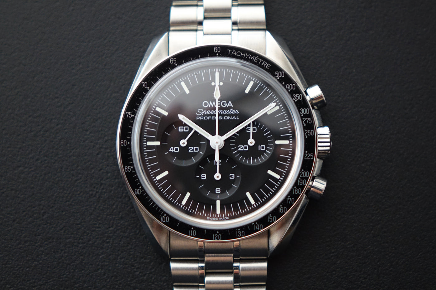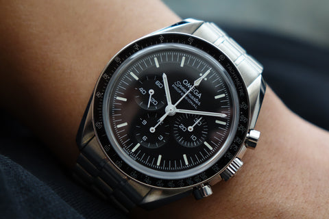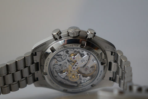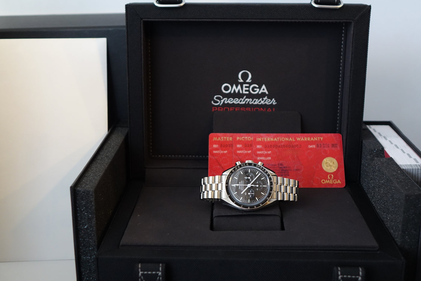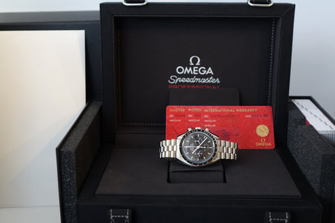 Retails for SGD 11,600 and complete with its original purchase receipt, the Omega Speedmaster Moonwatch Professional 310.30.42.50.01.002 is the modern “sapphire sandwich” Moonwatch — keeping the iconic Speedmaster look while adding sapphire crystal on both the front and the display caseback. The 42 mm stainless-steel case, black dial, and steel tachymeter bezel preserve the timeless Moonwatch profile, paired with the updated stainless-steel bracelet for comfortable daily wear. Powered by Omega’s latest hand-wound movement, it delivers the heritage, reliability, and modern refinement that make this one of the most sought-after contemporary Speedmaster references.