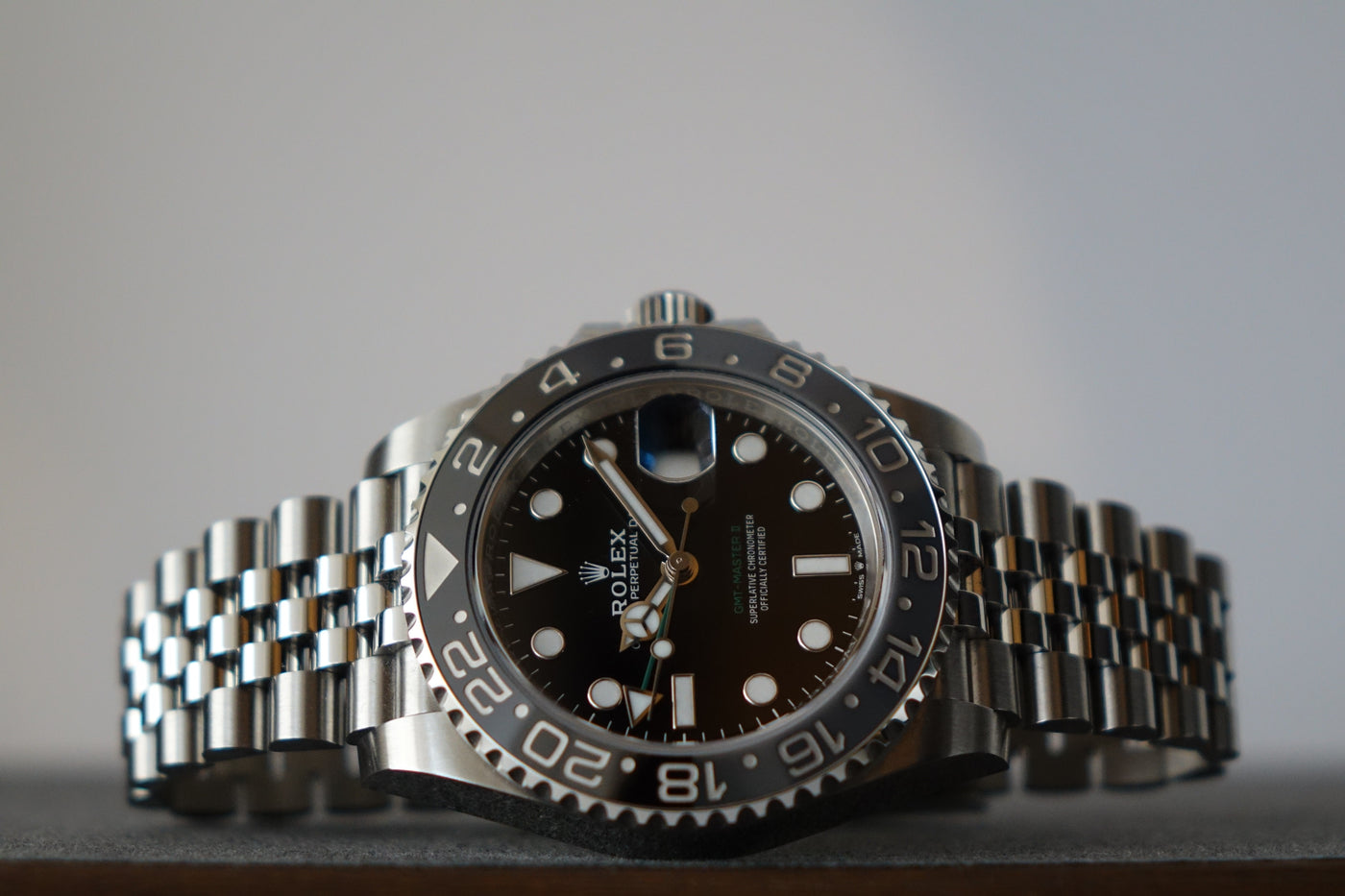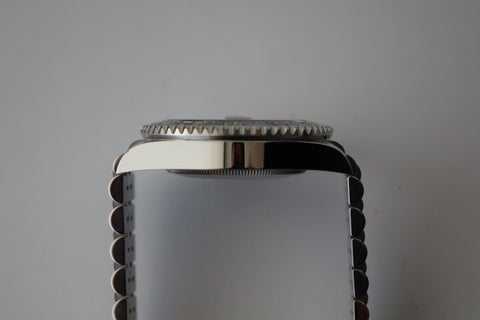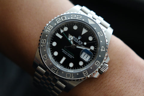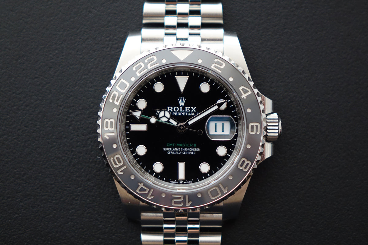 A contemporary evolution of Rolex’s iconic traveller’s watch, this latest GMT-Master II debuts the sleek black & grey ceramic bezel — earning its “Bruce Wayne” nickname for its stealthy, understated character. Paired with the Jubilee bracelet, it brings a refined and upscale twist to the line, offering a dressier feel compared to earlier Oyster-bracelet GMTs. A modern classic with everyday versatility and collector appeal.