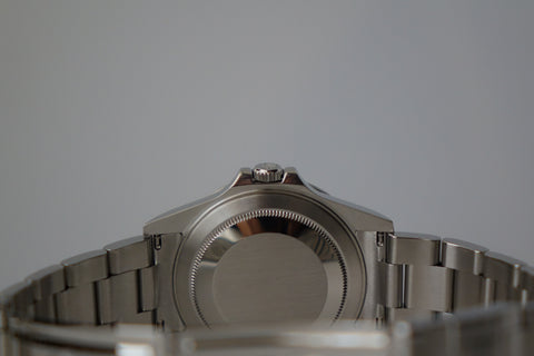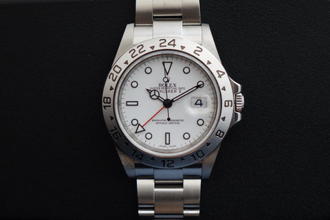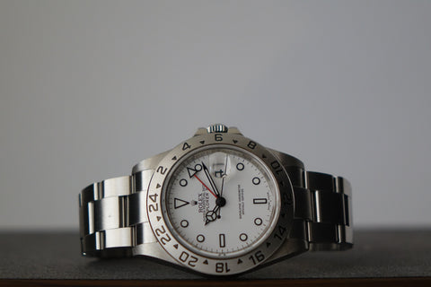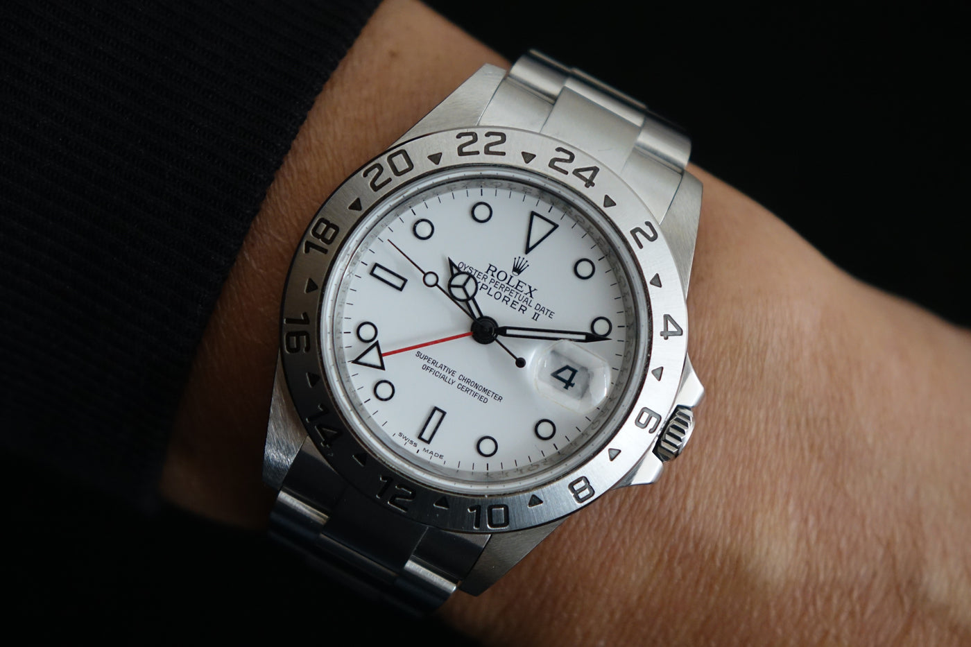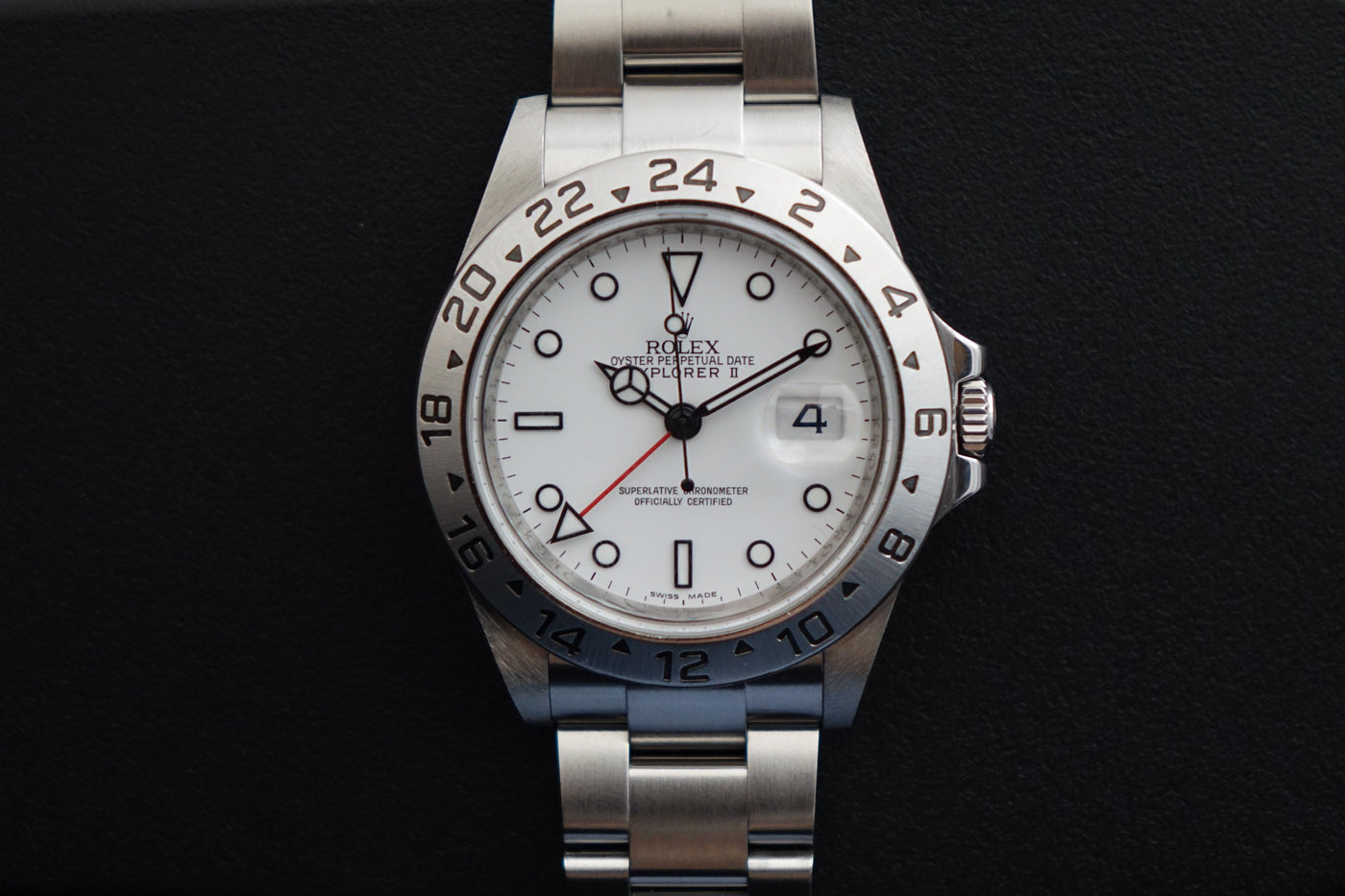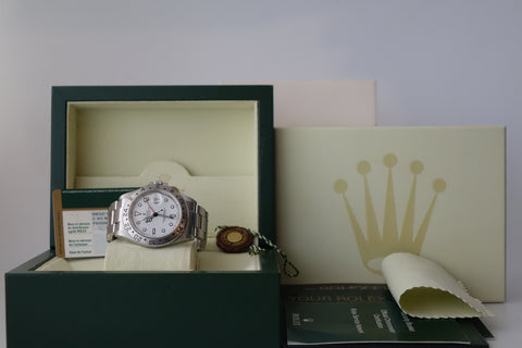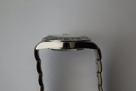 The Rolex Explorer II Ref. 16570 in this very late configuration stands as one of the rarest and most collectible iterations of the reference—featuring the elusive combination of an engraved rehaut (chapter ring) together with the upgraded Calibre 3186 movement. Seen only in the final years of production (circa 2009–2011), this overlap exists within an extremely narrow production window, making it exceptionally scarce and highly sought after among discerning collectors. It represents a true transitional piece—where classic five-digit proportions and tool-watch purity meet the subtle upgrades of the modern Rolex era.
