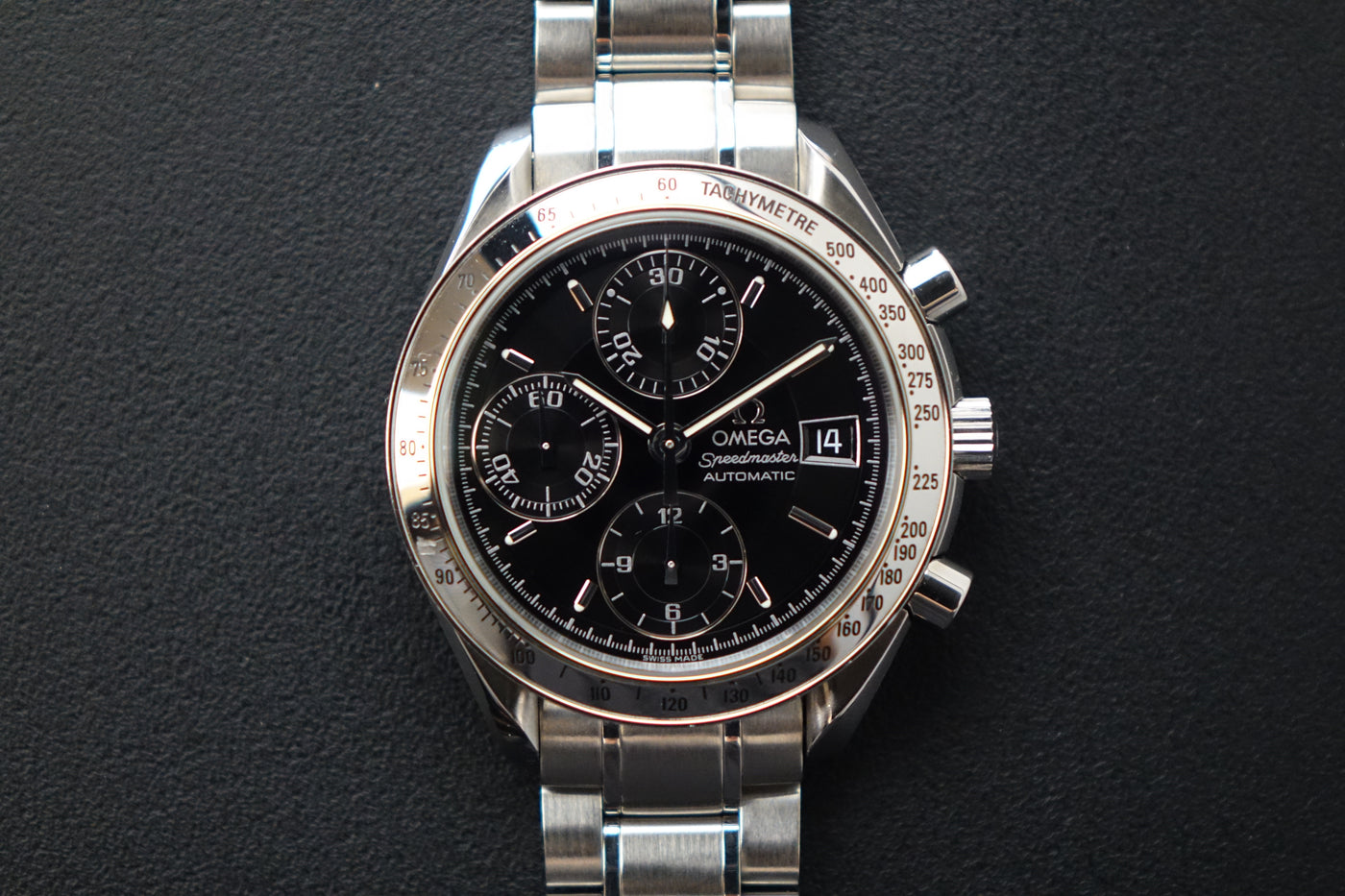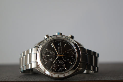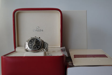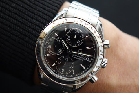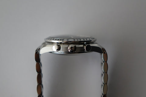 The Omega Speedmaster 3513.50 offers a clean, versatile take on the iconic Speedmaster line, with a balanced case size that wears comfortably on most wrists. The black dial with its classic chronograph layout gives it a sporty yet refined presence, striking the perfect middle ground between tool watch heritage and everyday elegance. Powered by an automatic movement and finished on a steel bracelet, it’s built for reliable, all-day wear. Easy to dress up or down, this is a go-anywhere piece that captures the essence of the Speedmaster—timeless, functional, and quietly confident.