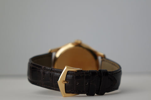 Retails at S$67.6K. The Patek Philippe Calatrava 5227R-001 offers a beautifully defined expression of classic watchmaking, with a perfectly proportioned rose gold case that sits elegantly on the wrist. Its smooth, polished finish and clean ivory dial create a warm, balanced look, enhanced by subtle details that give it depth without disrupting its simplicity. Designed with a focus on pure refinement, it carries a quiet presence that feels both confident and discreet. A distinctive touch is the officer’s case back hinged and seamlessly integrated adding a layer of heritage and craftsmanship, while preserving the watch’s clean, uninterrupted design.