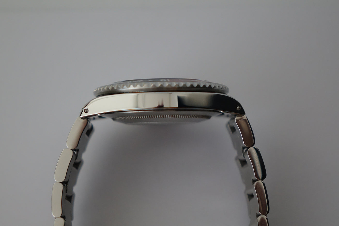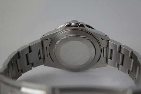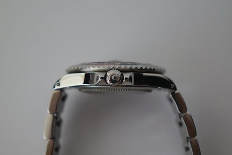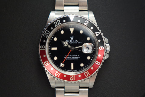 This is not your usual Rolex 16710. This particular GMT master 2 comes with original US warranty papers, confirming it originally came with a Coke bezel insert. Accompanying this watch is the original purchase receipt from day one, showing a retail price of USD $2652. Over time, this piece has gracefully acquired a charming eggshell patina, enhancing its collectible value. Perfect for enthusiasts and collectors.