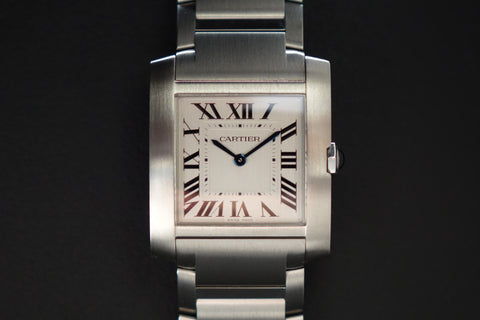One Owner Set, Retails at SGD$7,200. Offered here is a medium-sized stainless steel model that pairs timeless elegance with everyday practicality. First introduced in 1996, the Tank Française reimagined Cartier’s iconic Tank design with a modern case shape and seamless bracelet integration, while preserving the signature heritage that dates back to the original 1917 creation.