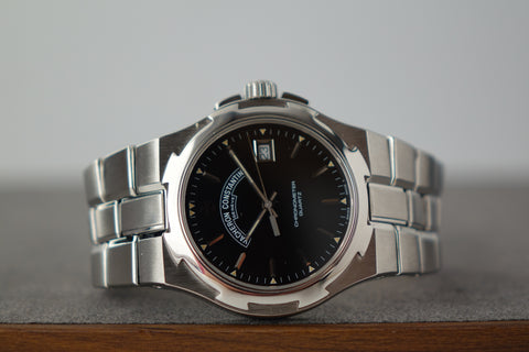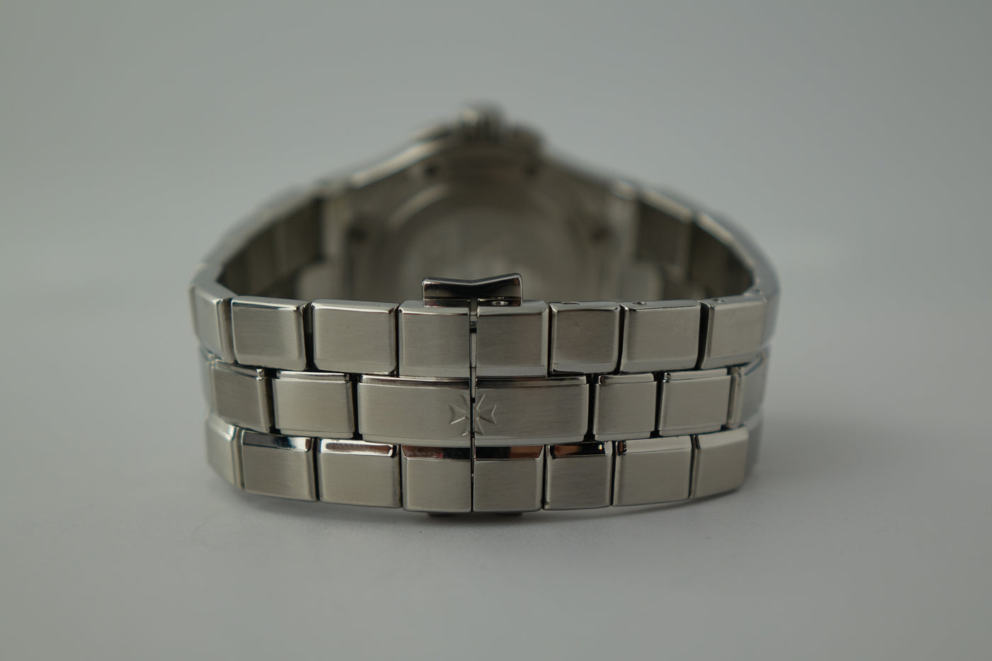 Offered here is the first-generation model that captures the essence of Vacheron’s luxury sports watch line. Introduced in 1996 as the spiritual successor to the iconic 222 of 1977, the Overseas combined refined finishing with true tool-watch robustness, featuring a stainless steel case with a Maltese cross-inspired bezel and an integrated bracelet.